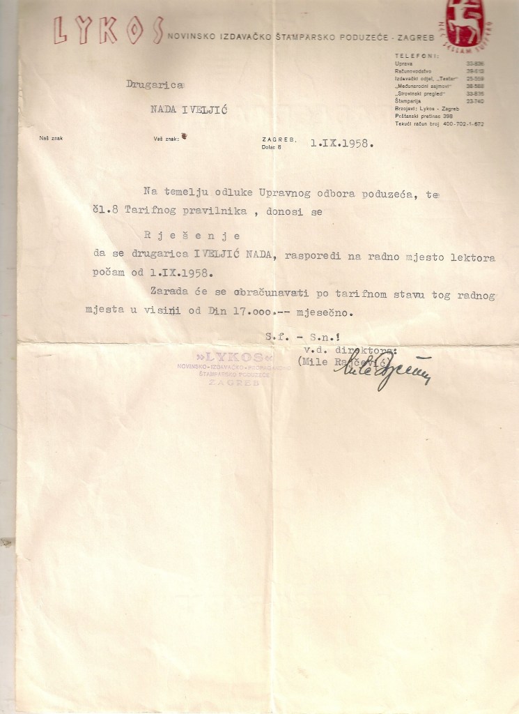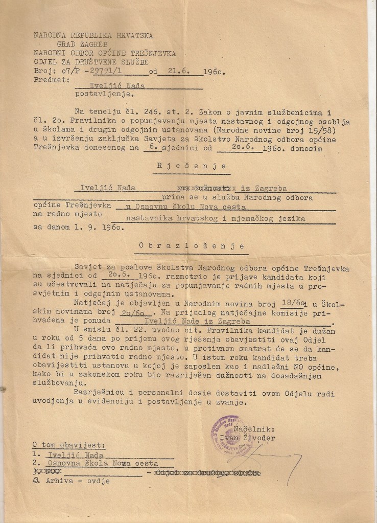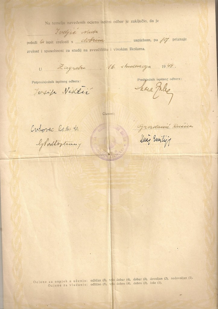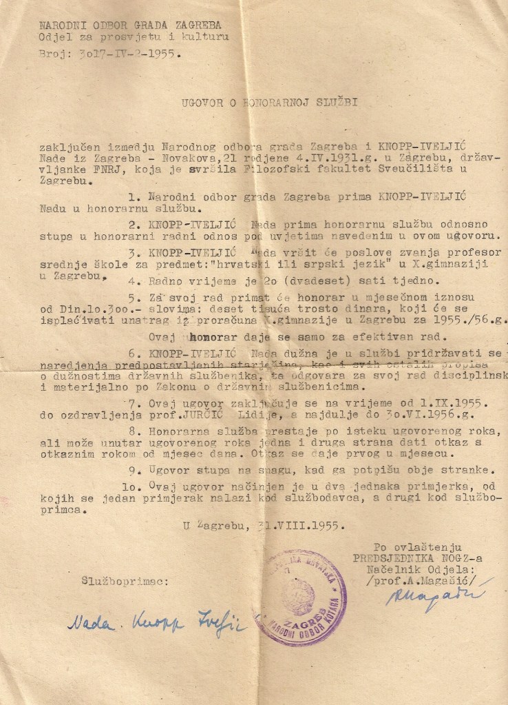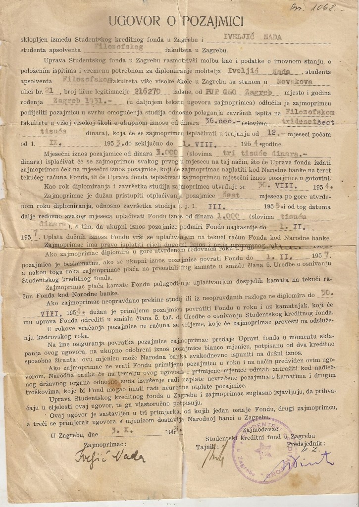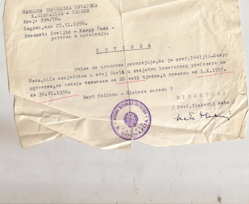 Dio ostavštine pohranjen je u Hrvatskom školskom muzeju (v. zaseban popis) a dio se nalazi u vlasništvu kćeri Iskre Iveljić. Taj dio obuhvaća izvorne objavljene i neobjavljene rukopise, osobne dokumente, fotografije, predmete te 29 bilježnica nastalih od 1946. do 1974. godine. Sadržavaju rukom pisane pjesme, crteže njene i drugih (Franc Bilić), najčešće crteže djece ali i kolega (J. Kaštelan), citate iz literature, kratke prikaze filmova ili predstava, naljepnice te dijelom dnevničke zapise. Najveći dio bilježnica ispunjen je citatima iz literature i pjesmama, koje je poglavito u ranijoj stvaralačkoj fazi, vrlo često ispravljala.